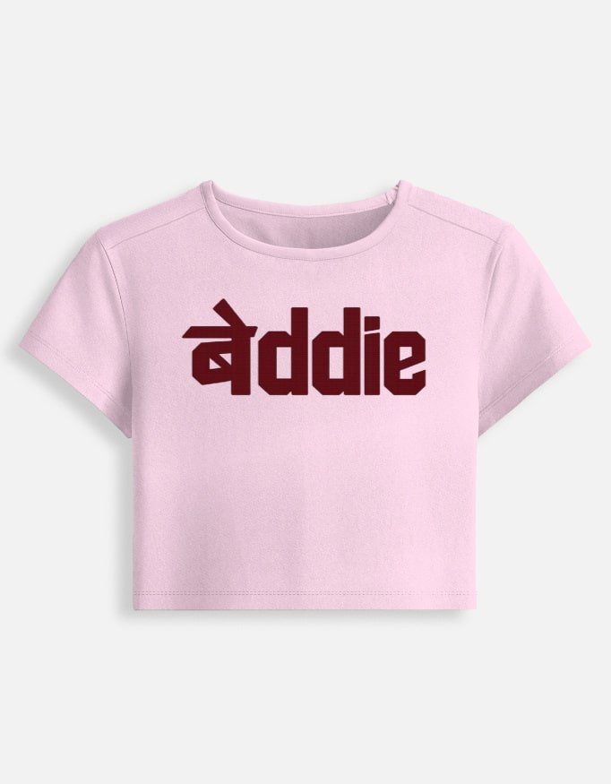 Soft look, baddie energy. Devanagari meets streetwear in this blush pink crop built for your it-girl era.