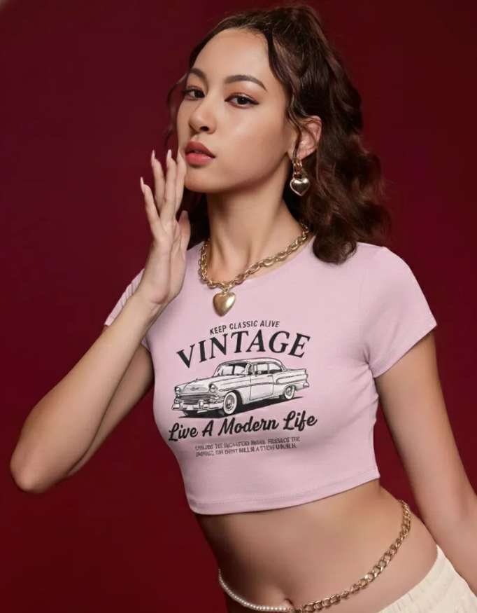 A soft, modern baby tee featuring a timeless vintage car graphic. Designed for everyday comfort with a retro aesthetic that blends classic charm and modern street style.